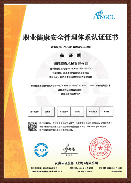 職(zhi)業健康安(an)全管理體(ti)系認證證(zheng)書
